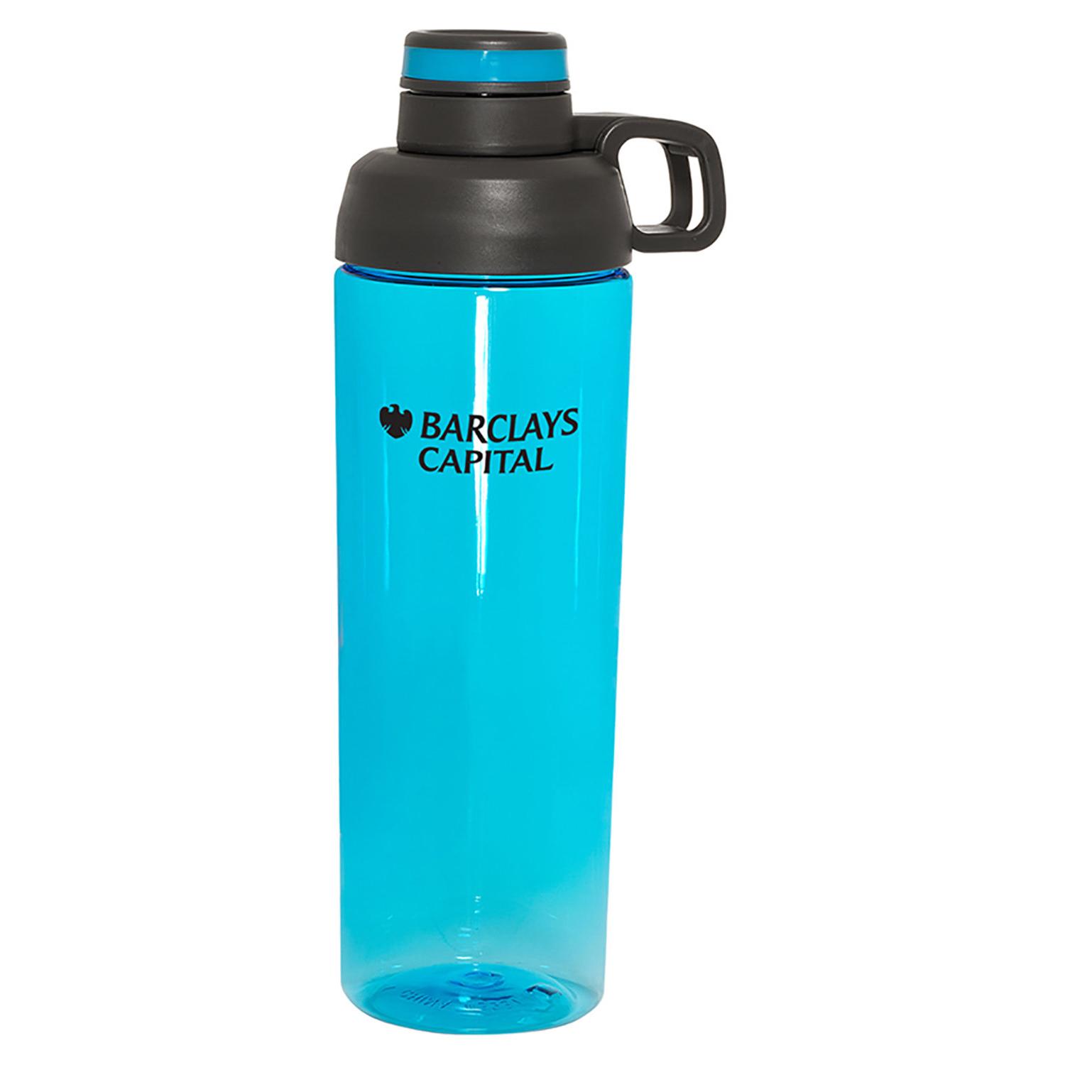 30 oz. (887 mL) Tritanâ„¢ Copolyester water bottle – BPA-free. Lid removes for easy filling. Drink-through spout features attached leak-proof screw-on cap. Caution: These cups are intended for cold beverages only and should not be stored near extreme heat. Hand-wash only. Not dishwasher safe or microwaveable. 10.2500″ H x 2.7500″ Diameter