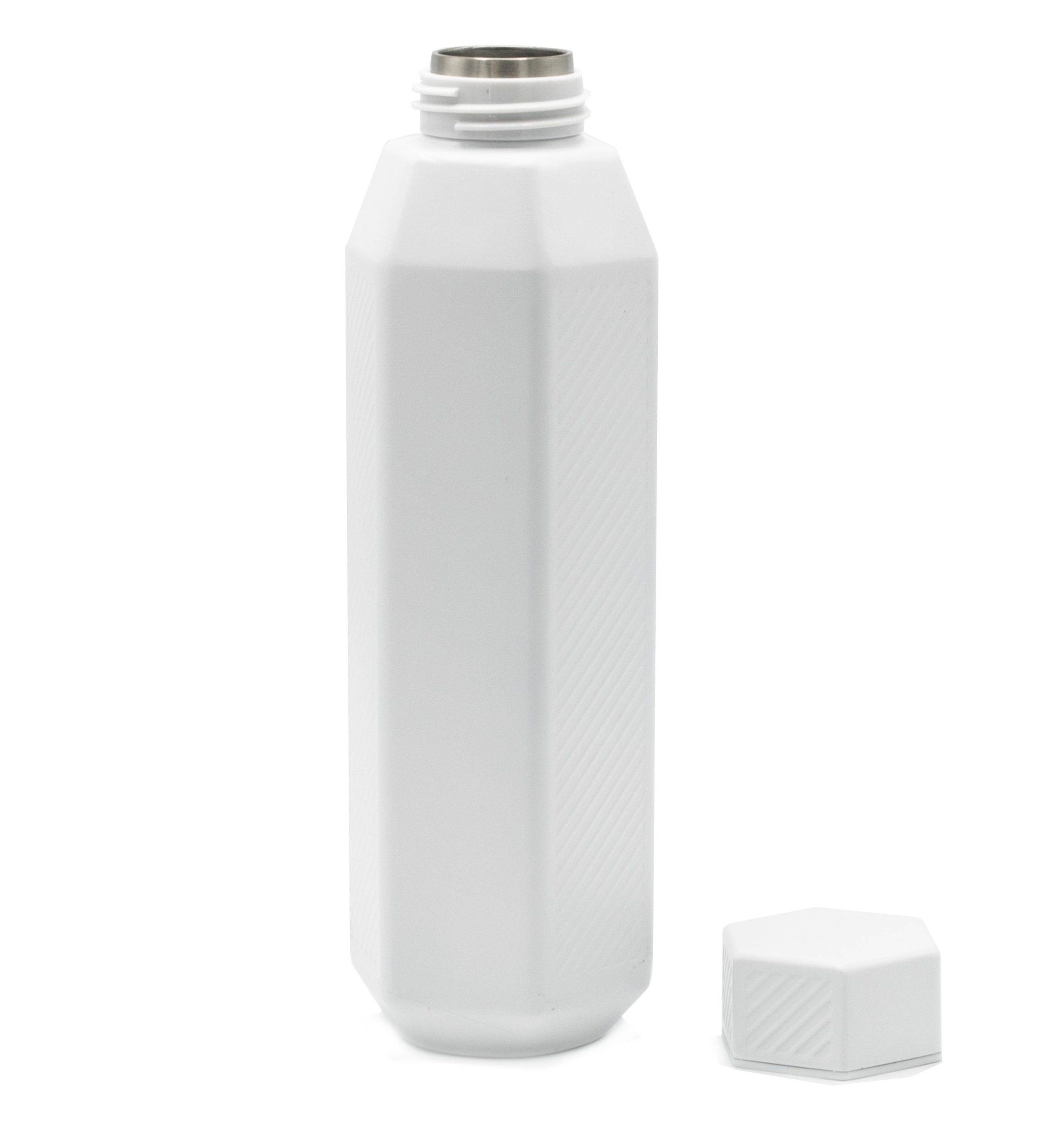 Hexagul: precision-cut for the modern eco-warrior. This 500mL recycled stainless steel bottle is a fusion of design and durability. With its sharp hexagonal shape, it’s a sleek accessory for hydration on-the-go. Hexagul is where sustainability becomes a part of your style statement. Hexagul is also made with 87% recycled materials, is carbon neutral, and can be decorated at a 1 piece minimum in 48 hours. Second life packaging: Hexagul’s box transforms into a snack holder. Complies with CE, FCC, FSC, Prop 65, RoHS, UN38.3. 9.72″ H x 3.1″ W