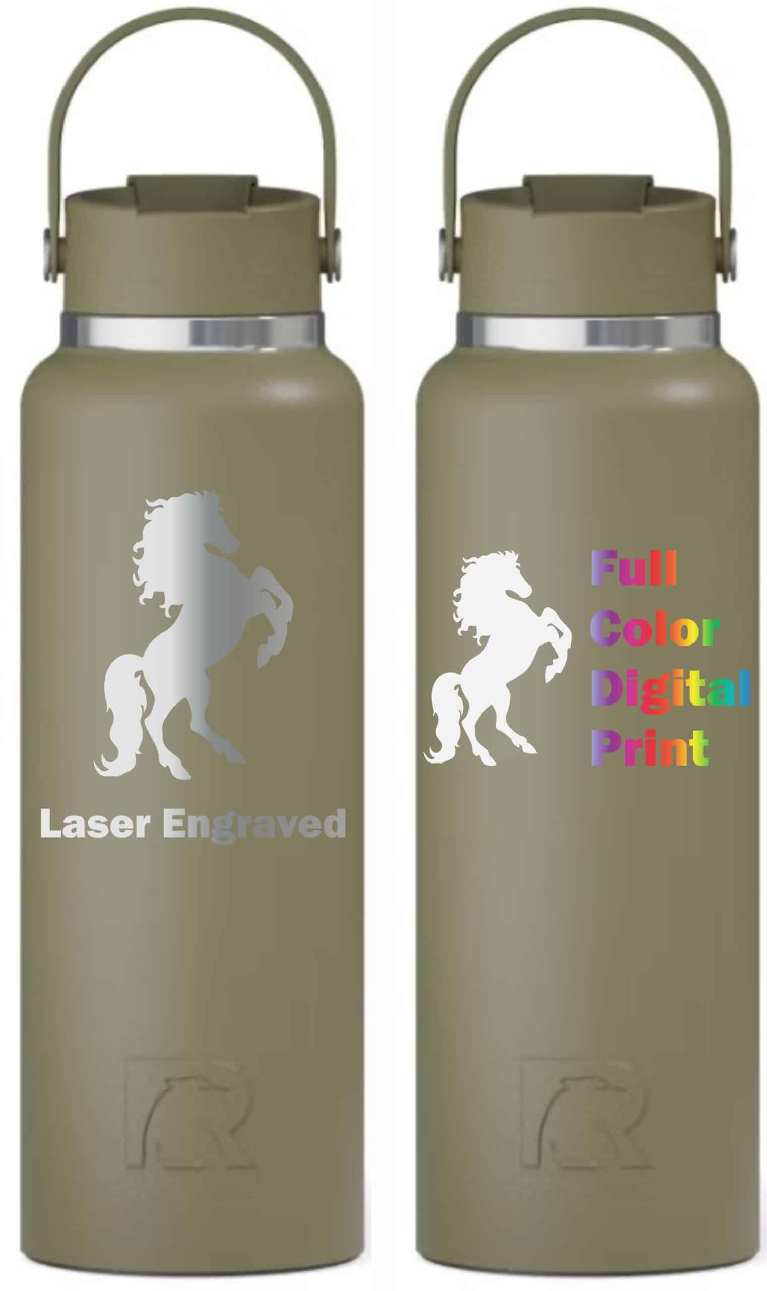The RTIC 40 oz Outback Bottle is the ultimate hydration companion, designed for maximum temperature control and pure, great-tasting drinks! Its ceramic-lined interior ensures every sip is fresh, while double-wall vacuum insulation keeps beverages cold for up to 24 hours or hot for up to 6 hours. The leak-proof, wide-mouth lid makes filling, pouring, and cleaning a breeze, and the laser-engraved version is dishwasher safe for added convenience. Customize yours with laser engraving or full-color digital printing—perfect for personal use, corporate branding, or unique gifts. Order now and drink in style, wherever you go! Complies with Prop 65. 9″ H x 4.5″ W
